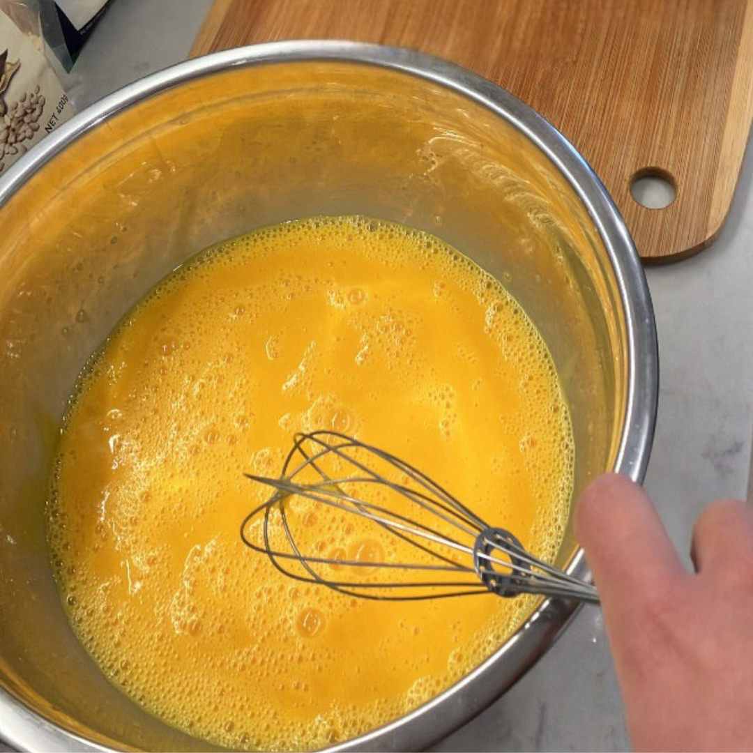Whisk eggs together. Mix through cottage cheese.